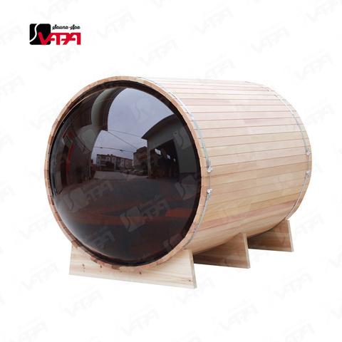 Vapasauna الصانع مباشرة عالية الجودة واضح الصف الارز الاحمر 1800*1500 مللي متر برميل ساونا مع الشرفة في الهواء الطلق حمامات البخار